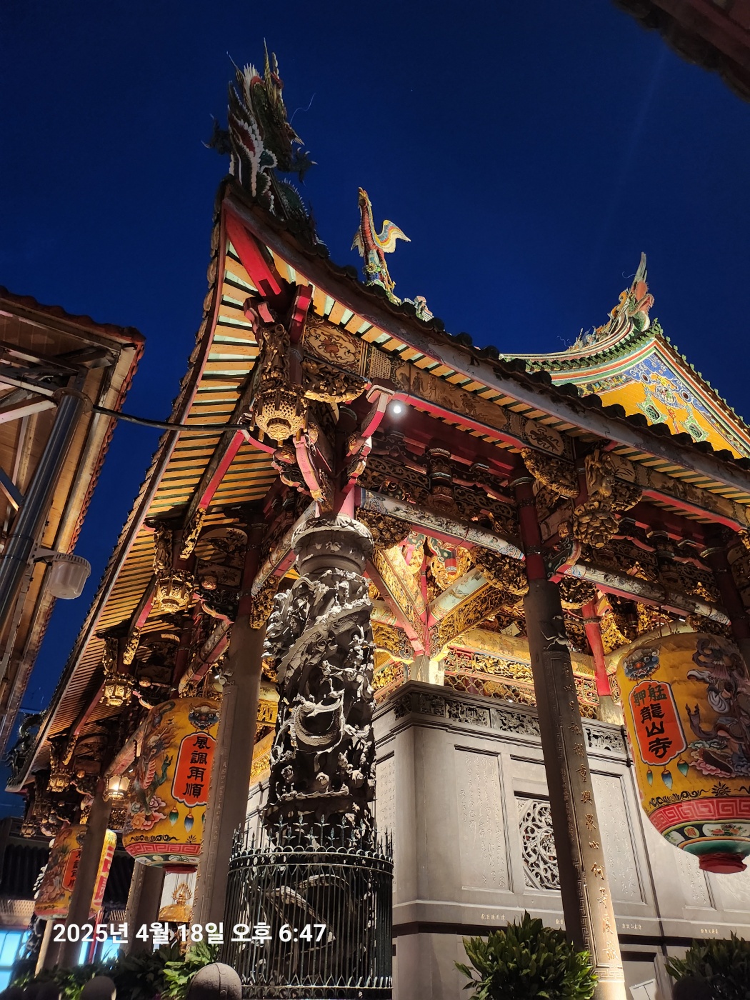 용산사는 숙소에서 도보 10분 거리라 산책 삼아 다녀왔는데, 향 냄새와 함께 현지인들이 소원을 비는 모습이 소박하면서도 인상 깊었습니다. 밤에는 화시제 야시장에서 땅콩아이스크림, 대왕치킨, 구운 오징어 등 다양한 길거리 음식을 맛보며 첫날을 마무리했습니다.